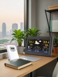 Анимированный гигрометрическийпрогноз погоды, Часы, Два будильника, Синее/желтое свечение цифр, Сетевой ададптерАС 220В, ададптер 50Гц DC 5.5B/500mA, Размер 19,8х3,8х6,5 см